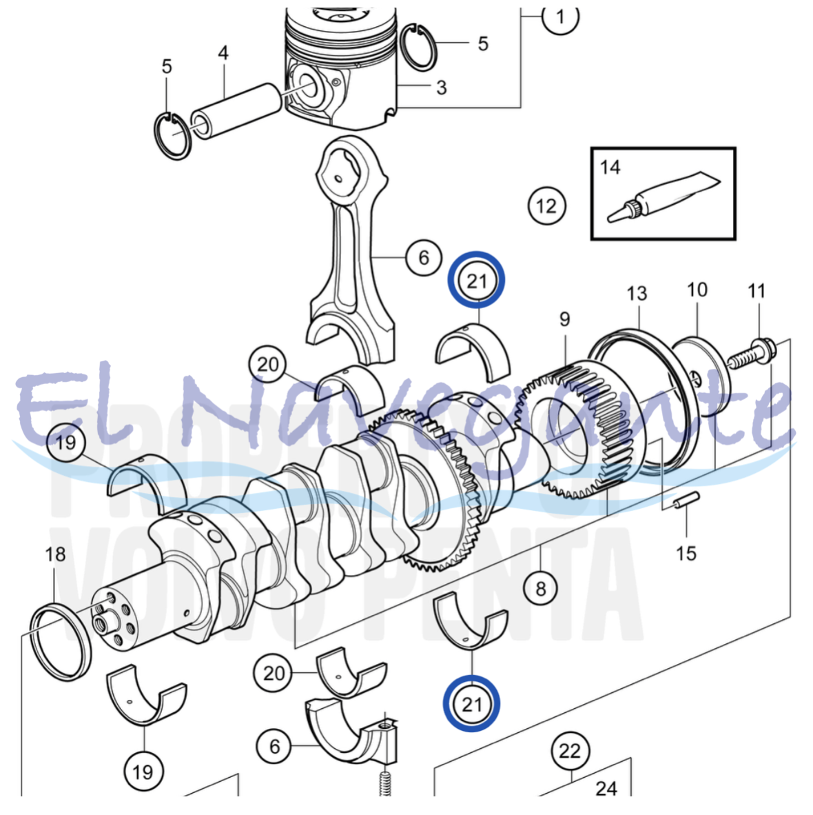 3586879 Concha Axial para motores D4 / D6 Volvo Penta, medida 0.25. cantidad
