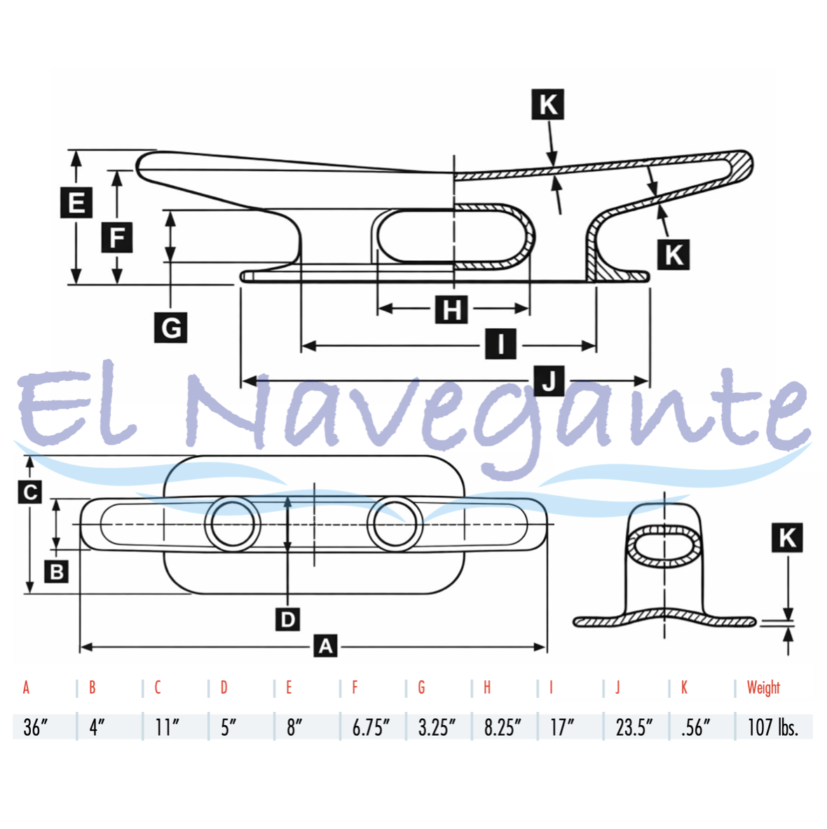 HK-482 Cornamusa de puerto en acero de 36 pulgadas.