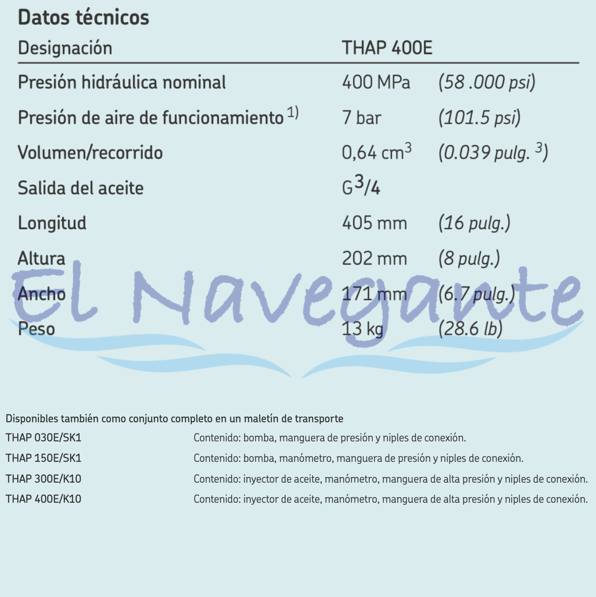 Las bombas y los inyectores de aceite neumáticos THAP E están disponibles en cuatro versiones diferentes según su presión. Se usan para el montaje y desmontaje de acoplamientos OK, para el desmontaje de grandes juntas de presión, como rodamientos, volantes de inercia, acoplamientos, ruedas de ferrocarril y muchas aplicaciones similares. Las bombas constan de una bomba hidráulica de alta presión, accionada por un pistón de aire. Las unidades se suministran en un maletín resistente, que incluye tubos de aspiración de aceite y mangueras de retorno con acoplamientos de conexión rápida.